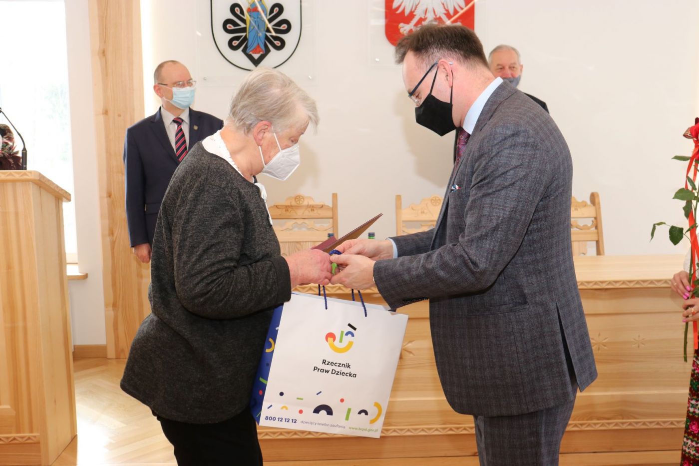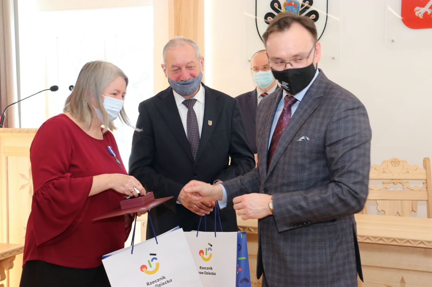 W czwartek w Starostwie Tatrzańskim odbyła się uroczystość wręczenia kilku osobom Odznaki Honorowej za Zasługi dla Ochrony Praw Dziecka. Otrzymały je osoby z terenu Powiatu Tatrzańskiego, których praca, często społeczna związana jest właśnie z dobrem dzieci. – Formalny rzecznik jest jeden, ale zawsze powtarzam, że w całej Polsce są tysiące osób, które codziennie bez rozgłosu i nie dla sławy pomagają w różny sposób najmłodszym – podkreśla Mikołaj Pawlak Rzecznik Praw Dziecka. – Wszyscy wspólnie dbamy o dobro dzieci pod różnym względem – tutaj dzisiaj wśród odznaczonych mamy pediatrę, rodzinę zastępczą czy osobę która integruje dzieci niepełnosprawne poprzez sport czy w domu dziecka zapewnia wychowankom maksymalnie dobre warunki.